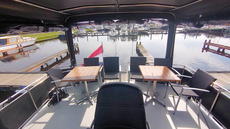 Daardoor genieten U en 'uw crew' van nog meer ruimte en comfort: ontbijten, lunchen en dineren onder alle weersomstandigheden.........met zicht rondom!