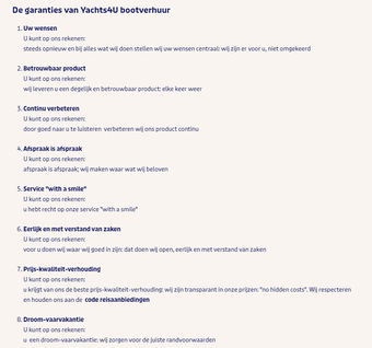 Als bootverhuur bedrijf zijn wij, Yachts4U, in staat u een veel betere en dus professionelere service te bieden: zorgeloos varen dus!
