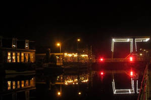 Een minder hoge boot dan de Lilian zou door kunnen varen door de vaste brug aan het eind van het dorp, maar wij moeten keren en dezelfde weg terug. Geen probleem voor de brugwachtster, die op haar fiets van de ene naar de andere brug gaat om ons weer het dorp uit te helpen.