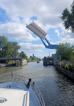 Met de Prinses Margrietsluis in het zicht zijn wij bakboord afgebogen om via het Streamkanaal de vaart naar Lemmer rustig door te zetten. Als eerste door de Zijlroedebrug door naar de Flevobrug. Hier betaal je uiteraard weer door het klompje te vangen en daar je geld in te doen voor alle bruggen in Lemmer (alleen bij binnenkomst in Lemmer) En dat is het zeker waard, want wat een gezellig dorp is dit.